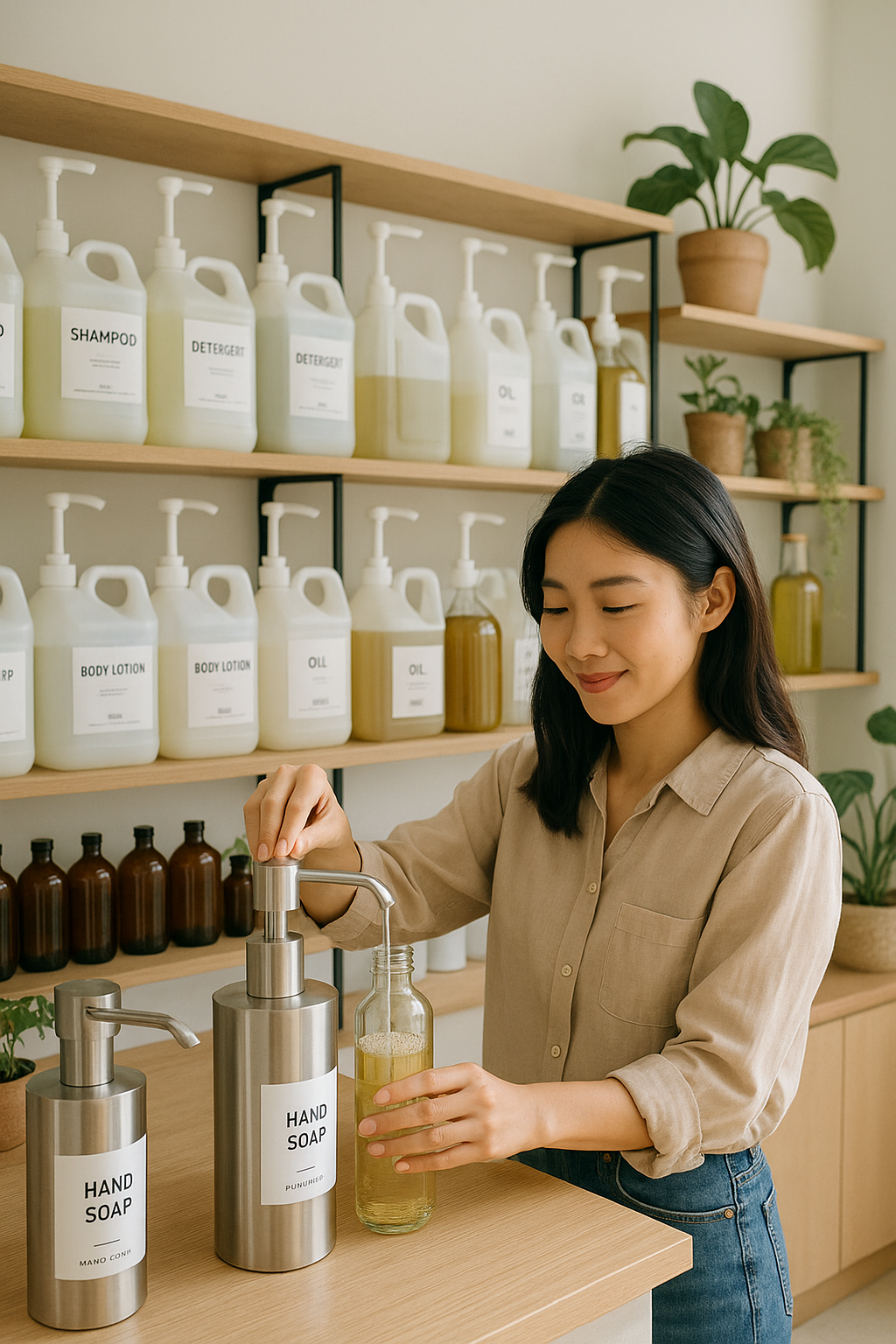 요즘은 리필 트럭이나 팝업 친환경 스토어도 생기고 있습니다.