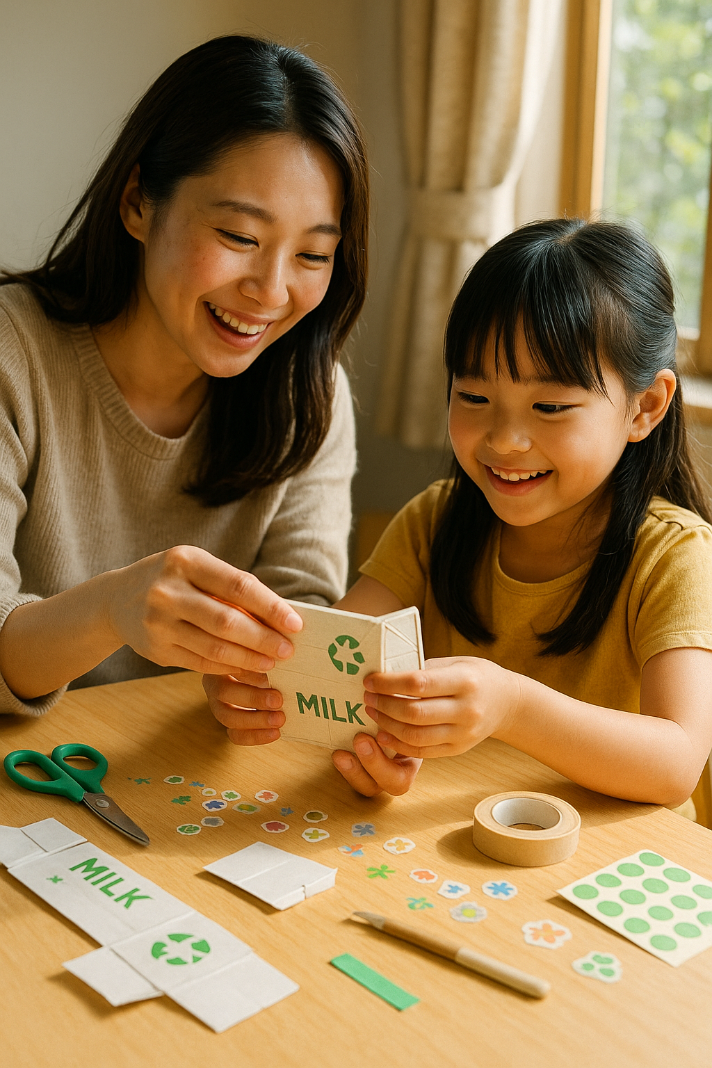 🛠 준비물: 우유팩, 가위, 풀, 테이프, 스티커