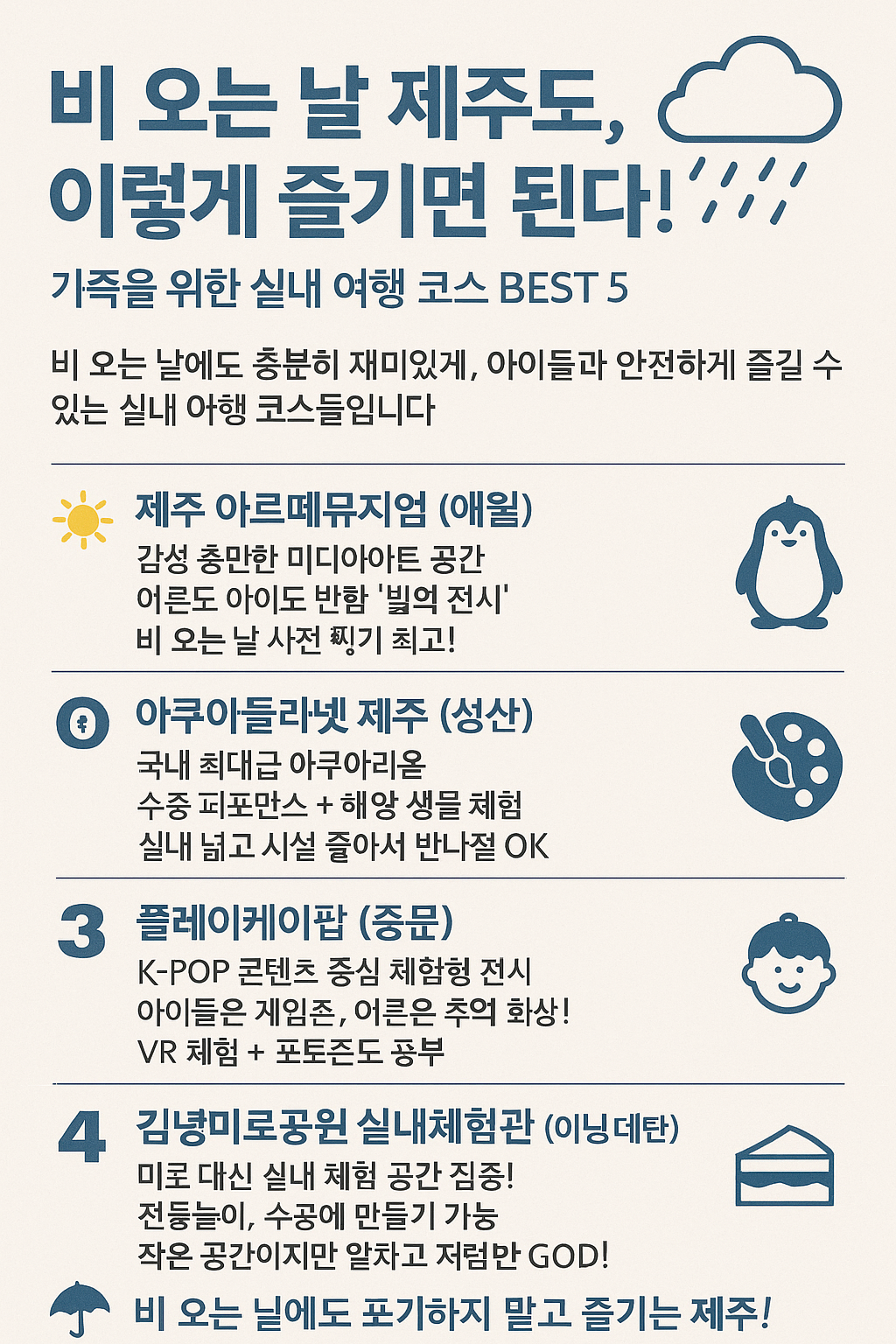 비 오는 날에도 **포기하지 말고 즐기는 제주!**