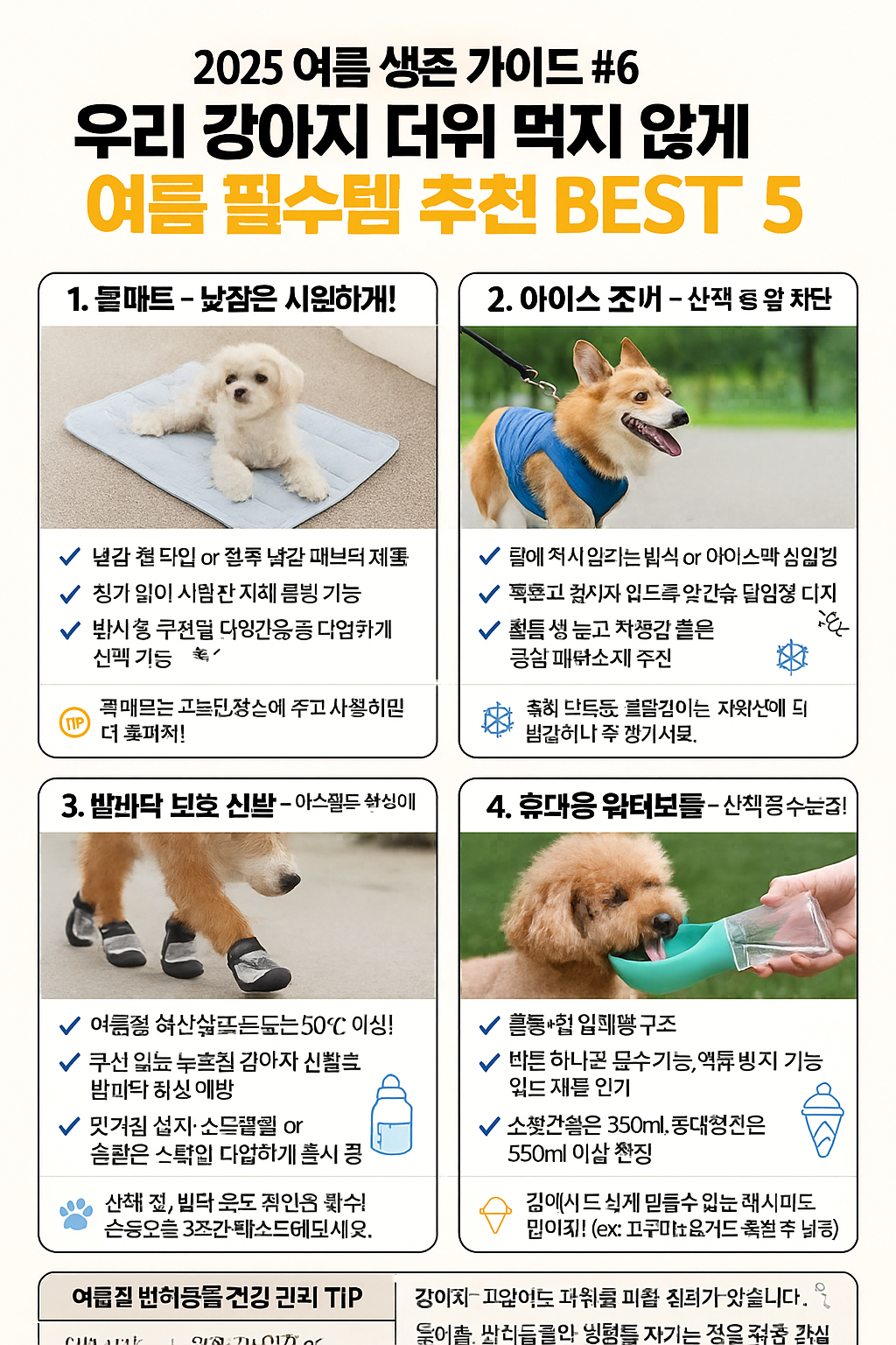 집에서도, 산책 중에도 꼭 필요한 여름 생존템을 챙겨야 해요!