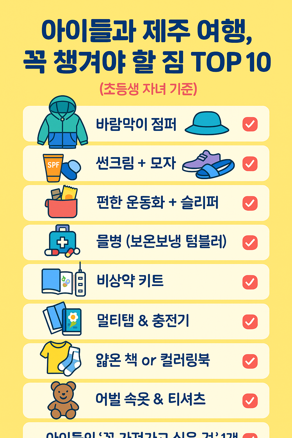 "아이들과 제주 여행, 꼭 챙겨야 할 짐 리스트 TOP 10 – 초등학생 가족 기준!"